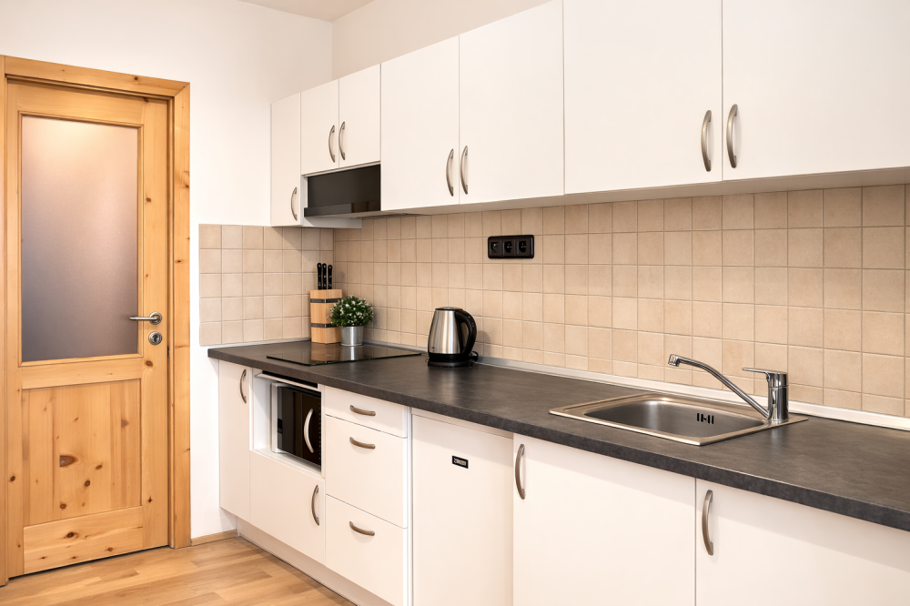 Naše dvojlůžkové apartmány nabízí ideální kombinaci pohodlí a soukromí. Jsou vhodné pro jednotlivce, páry nebo mladé rodiny s miminkem, případně pro 3-4 členné skupiny pro ubytování s přistýlkou. V apartmánech je spojena útulná ložnice s příjemným obývacím pokojem, vytvářejíc tak domovskou atmosféru pro odpočinek a relaxaci. Komfortně vybavená kuchyně s jídelním stolem vám umožní připravit si vlastní pokrmy a užít si zde společné chvíle. Součástí apartmánu je také koupelna, která poskytuje soukromý prostor pro osobní hygienu. Veškeré zázemí apartmánu máte čistě pro sebe a pro své blízké, takže se zde můžete cítit pohodlně jako doma.