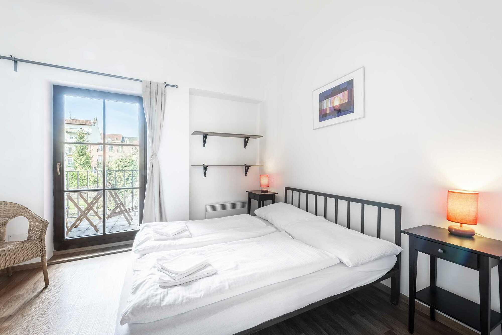 Náš stylový čtyřlůžkový apartmán se dvěma ložnicemi propojuje komfort s vkusným designem. Tento apartmán je ideální pro rodinu nebo skupinu čtyř přátel. Do apartmánu je možné přidat 1-2 přistýlky. Jedna z ložnic má přímý přístup na balkón, kde si můžete užívat posezení na čerstvém vzduchu s výhledem do klidného vnitrobloku. Druhá ložnice je spojena s obývacím pokojem, vytvářejíc tak příjemný a prostorný společenský prostor. Vybavená kuchyně s jídelním stolem umožňuje přípravu vlastních jídel a poskytuje místo pro společné strávení času. V apartmánu je také moderně vybavená koupelna, která zajišťuje komfort a soukromí během vašeho pobytu.
