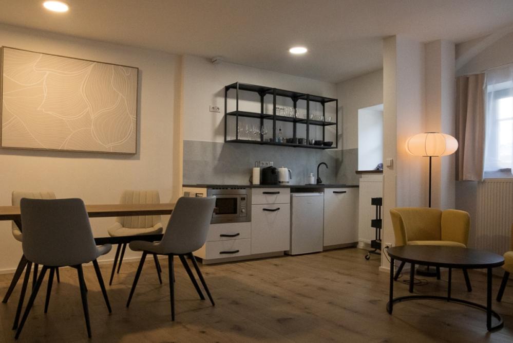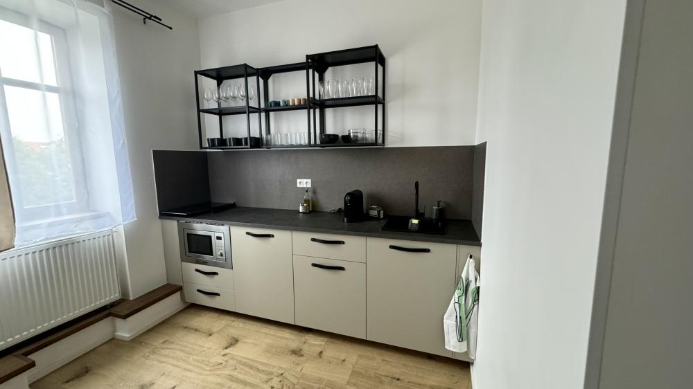 Die Wohnung im 2. Stock ist für zwei Personen ausgelegt und bietet einen modernen, hellen Raum, ideal für einen komfortablen und ruhigen Aufenthalt.