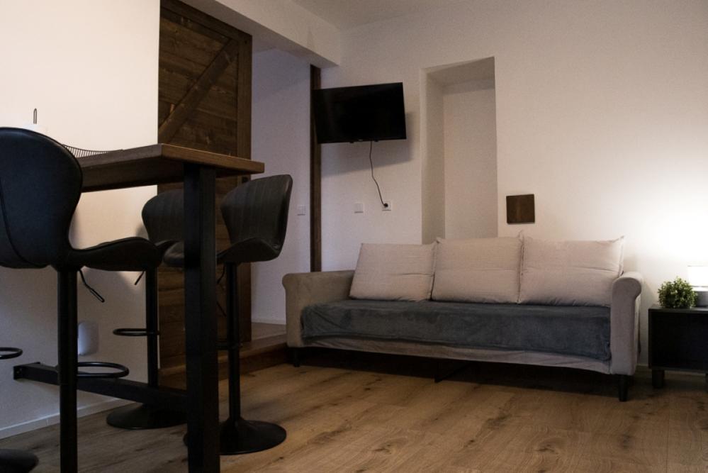 Die Wohnung Sumava ist sehr geräumig und dennoch gemütlich. Es befindet sich im 2. Stock und ist ideal für bis zu sechs Personen, einschließlich eines Zusatzbettes. Diese Wohnung bietet eine komfortable Unterkunft und viel Platz für große Familien oder Gruppen von Freunden.