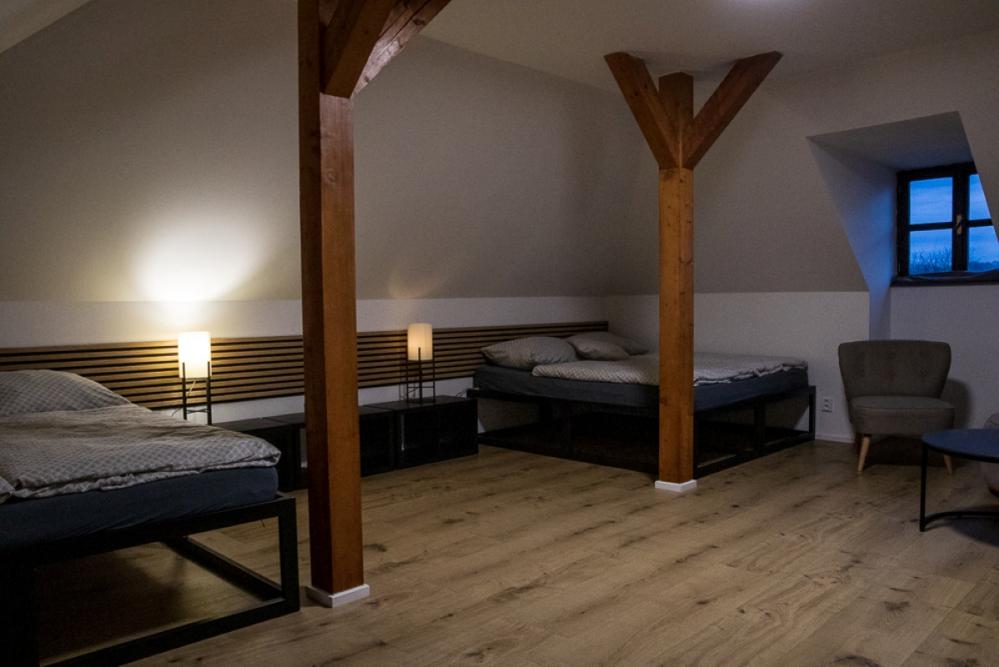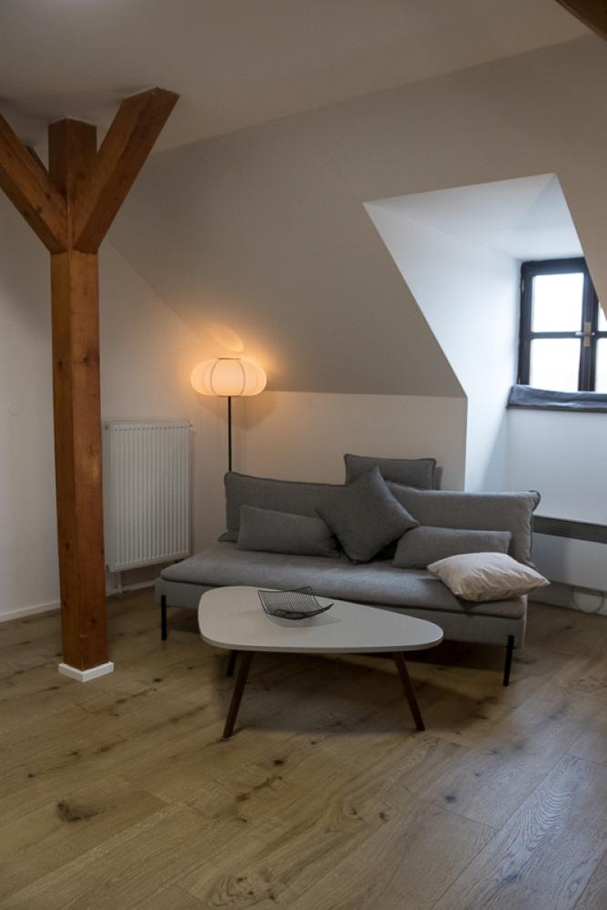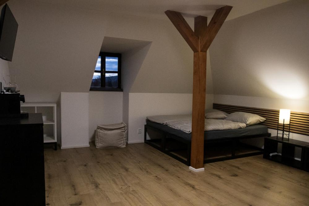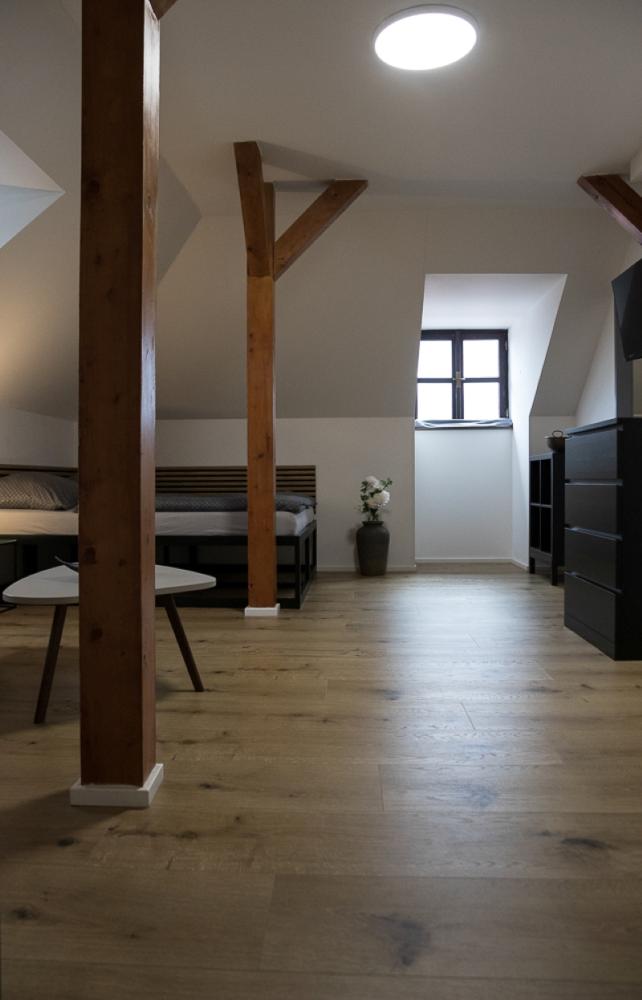 Das Lipno-Apartment im 3. Stock ist ideal für vier Personen und bietet einen einzigartigen Loft-Raum, der historische Elemente mit modernem Komfort verbindet.