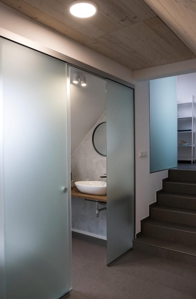 The apartment is furnished in a very modern way, using glass design elements that add freshness, elegance and plenty of light to the space. The low ceilings contribute to the cosy atmosphere typical of loft spaces.