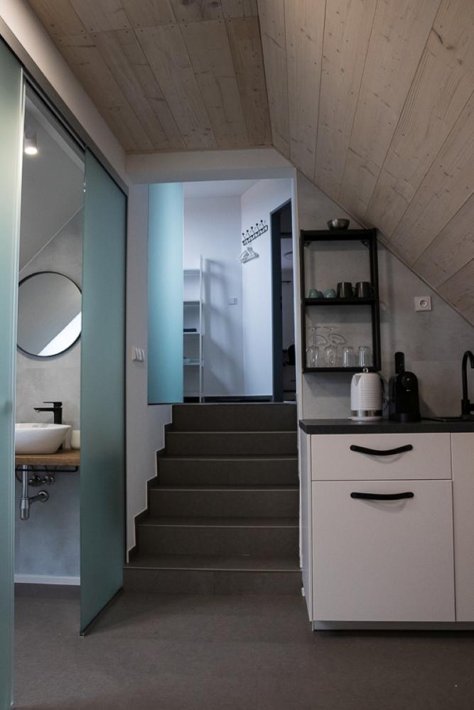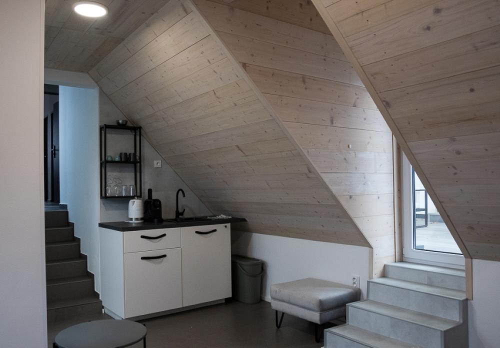 The Dívčí kámen apartment on the 2nd floor is ideal for two people and offers modern comfort in the attic space. Your luxurious apartment is designed as a romantic studio apartment, combining comfort, style and a unique view of nature with direct access to the outdoor terrace.
